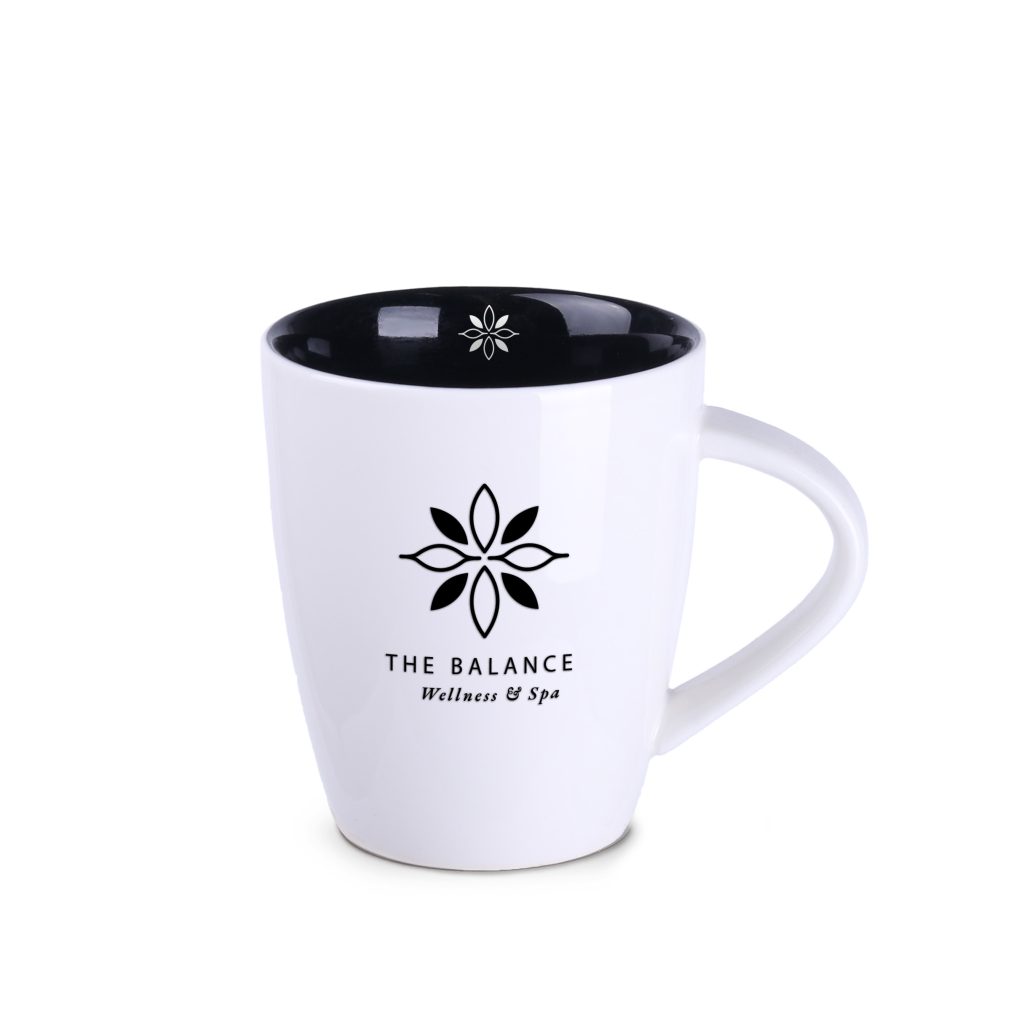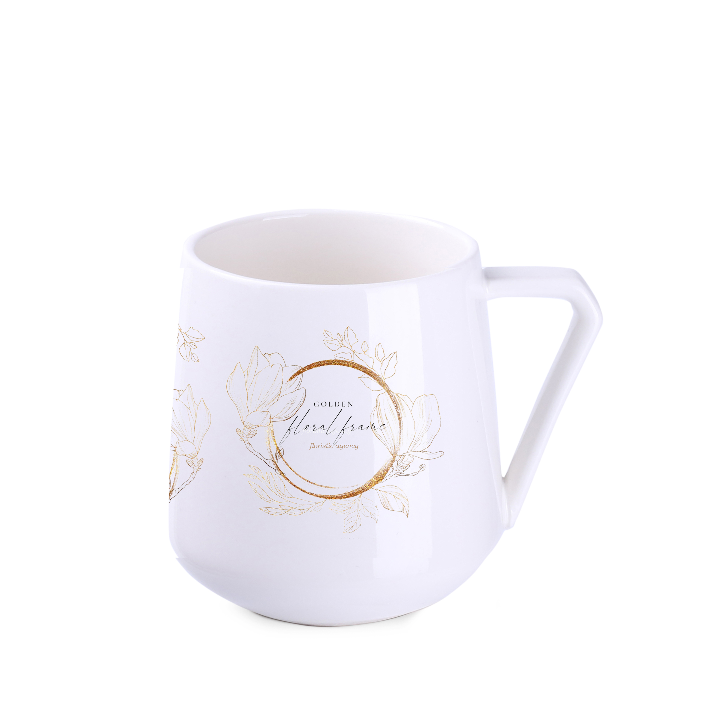A porcelain mug with an interesting shape and an avant-garde handle. It will emphasize the uniqueness of the promoted brand in an original way.