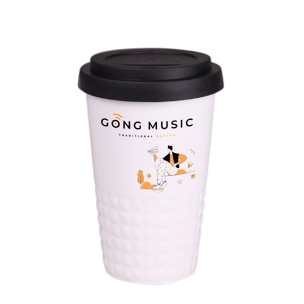 Designer mobile mug made of porcelain. It has a characteristic finish of the lower part in the form of protrusions. The model is intended for active people, lovers of trips and travel. Thanks to the rare internal structure of double porcelain walls, it is characterized by an increased level of thermal insulation. It has a cover available in 8 colors: white, orange, red, green, navy blue, brown, black and gray.