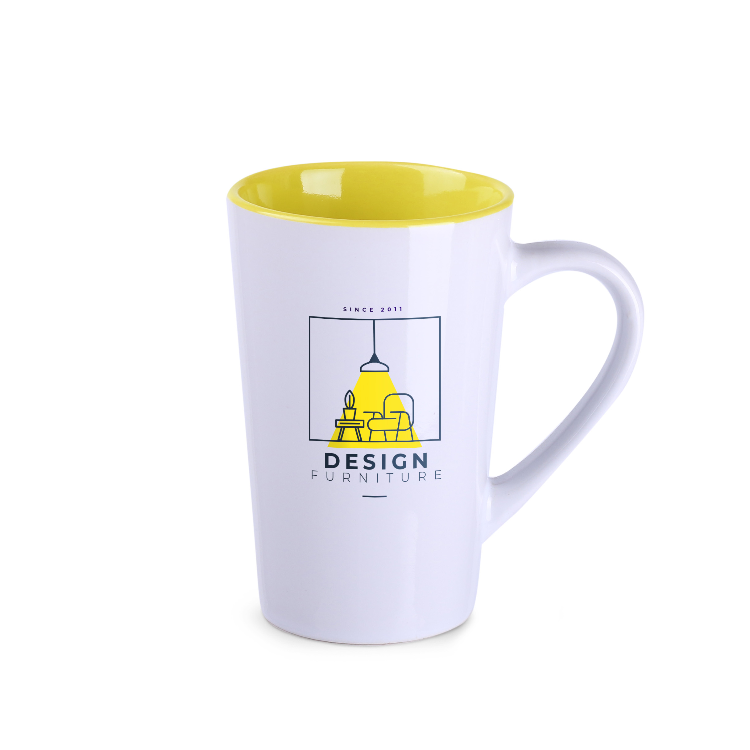 Classic mug with a trapezoidal shape and high walls. It comes in six interior colors to choose from. Perfect for large and demanding decorations.