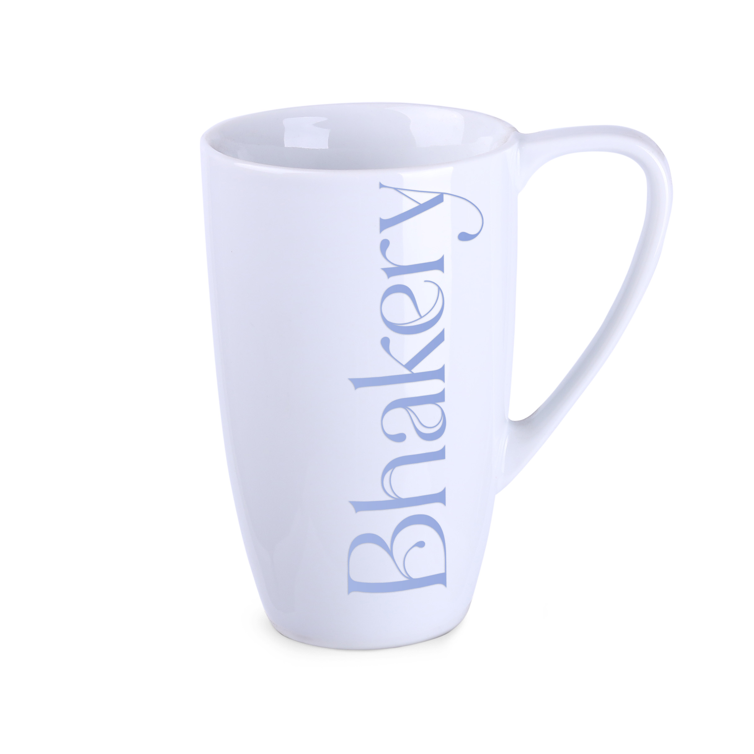 A slim and roomy mug made of high-quality porcelain. It has an elegant and comfortable handle. You can apply extensive decorations on it.