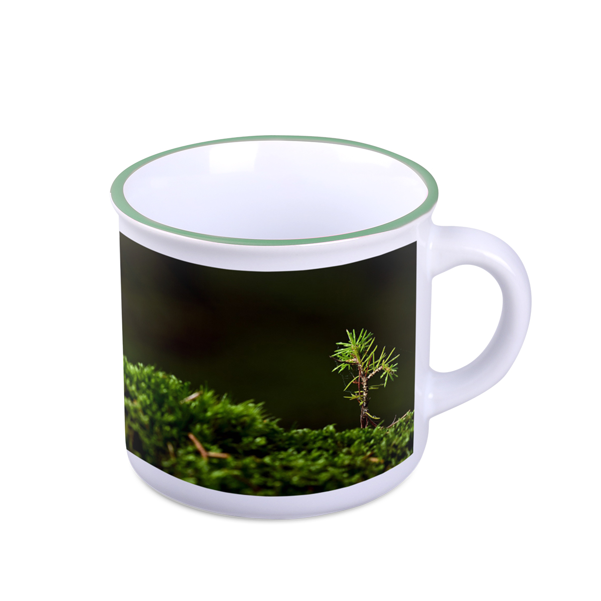 A sublimation mug with a minimalist and modern design. It has an interior in several shades to choose from. It can be printed in photographic quality. It has an interesting accent in the form of a stripe on the edge available in three fashionable shades.