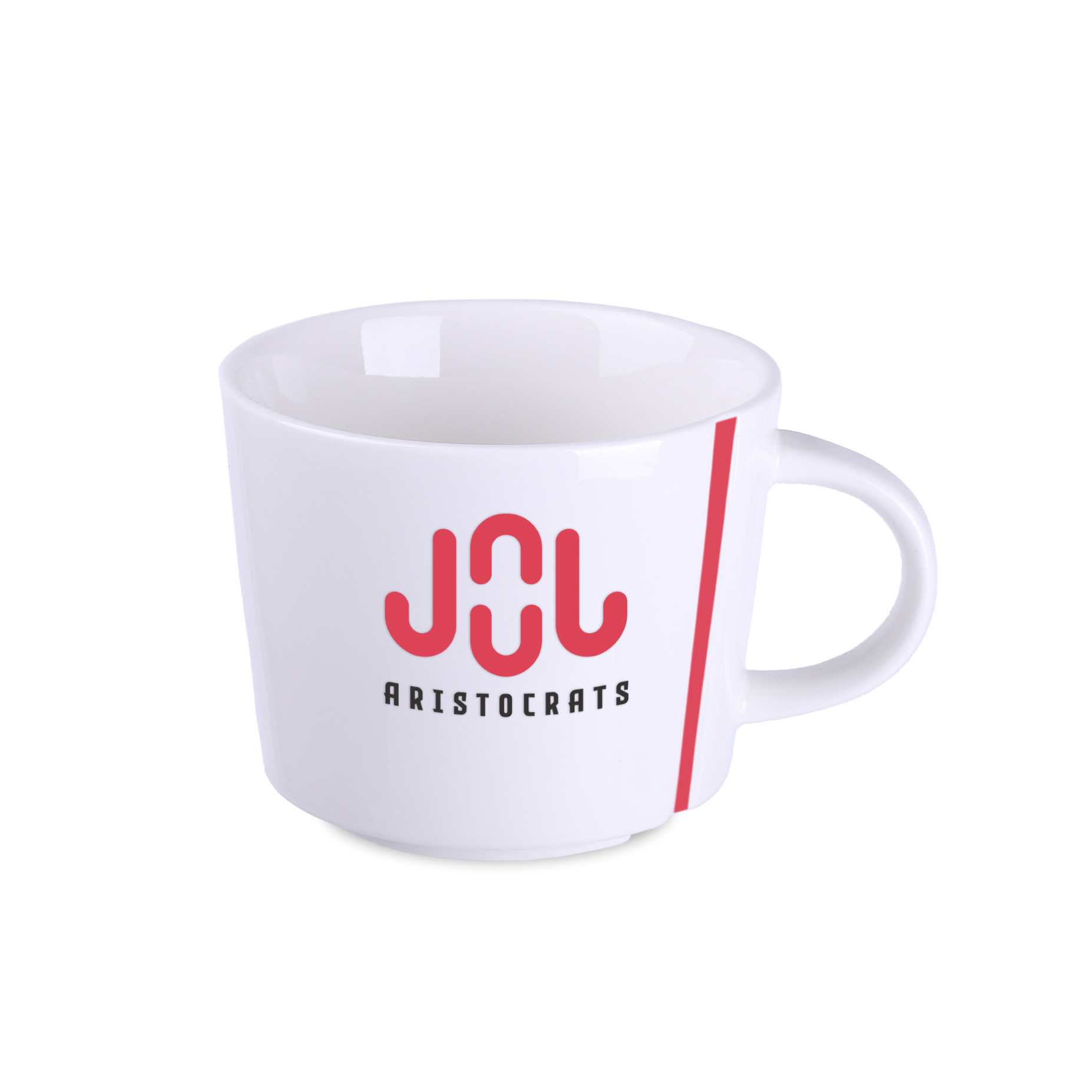 Popular and ergonomic model made of porcelain. It is distinguished by interesting embossing on both sides of the handle. It comes in three capacities. A style emphasizing the originality of the promoted brand.