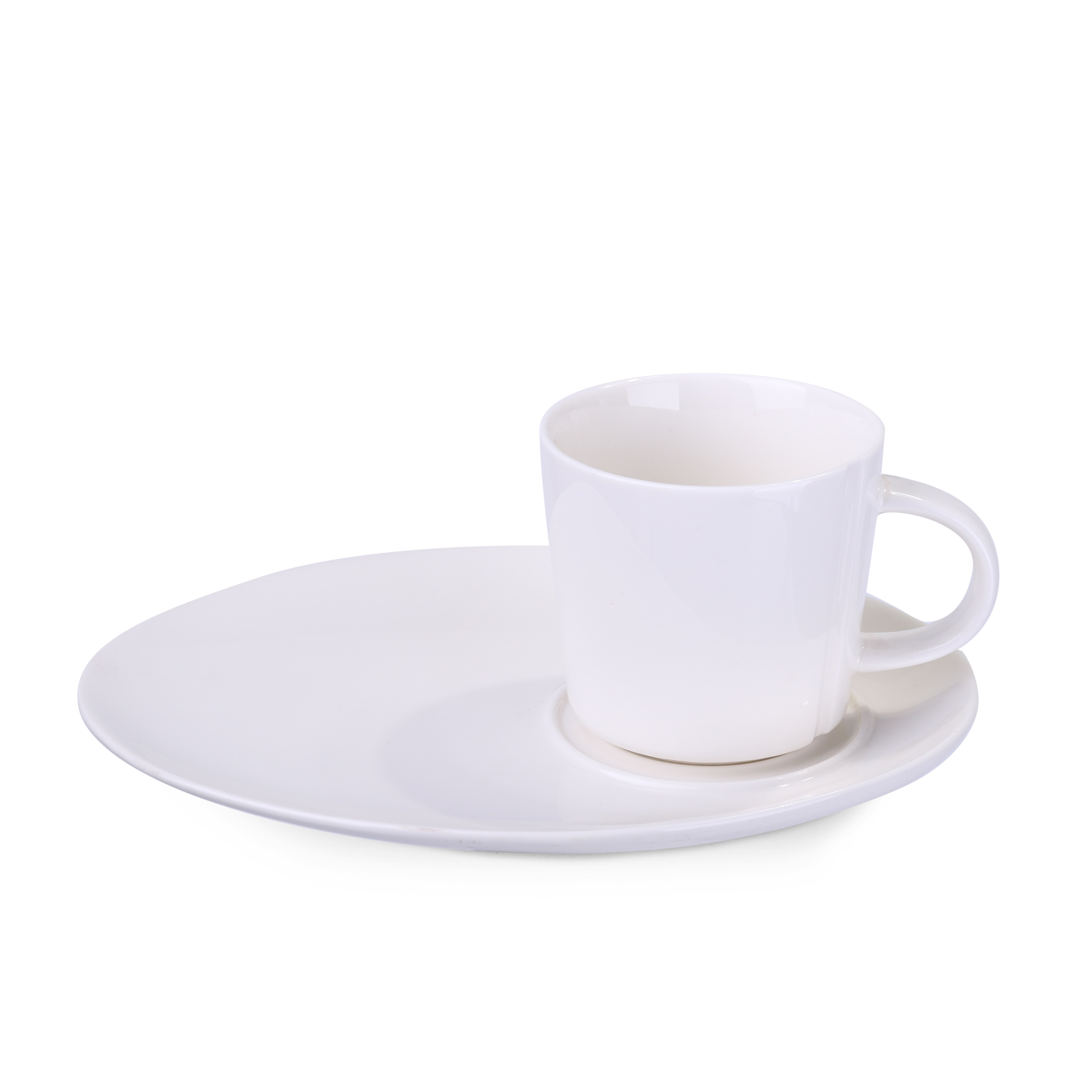 Original cup made of porcelain. It is distinguished by interesting embossing on both sides of the ear. It will perfectly highlight the unique brand message.