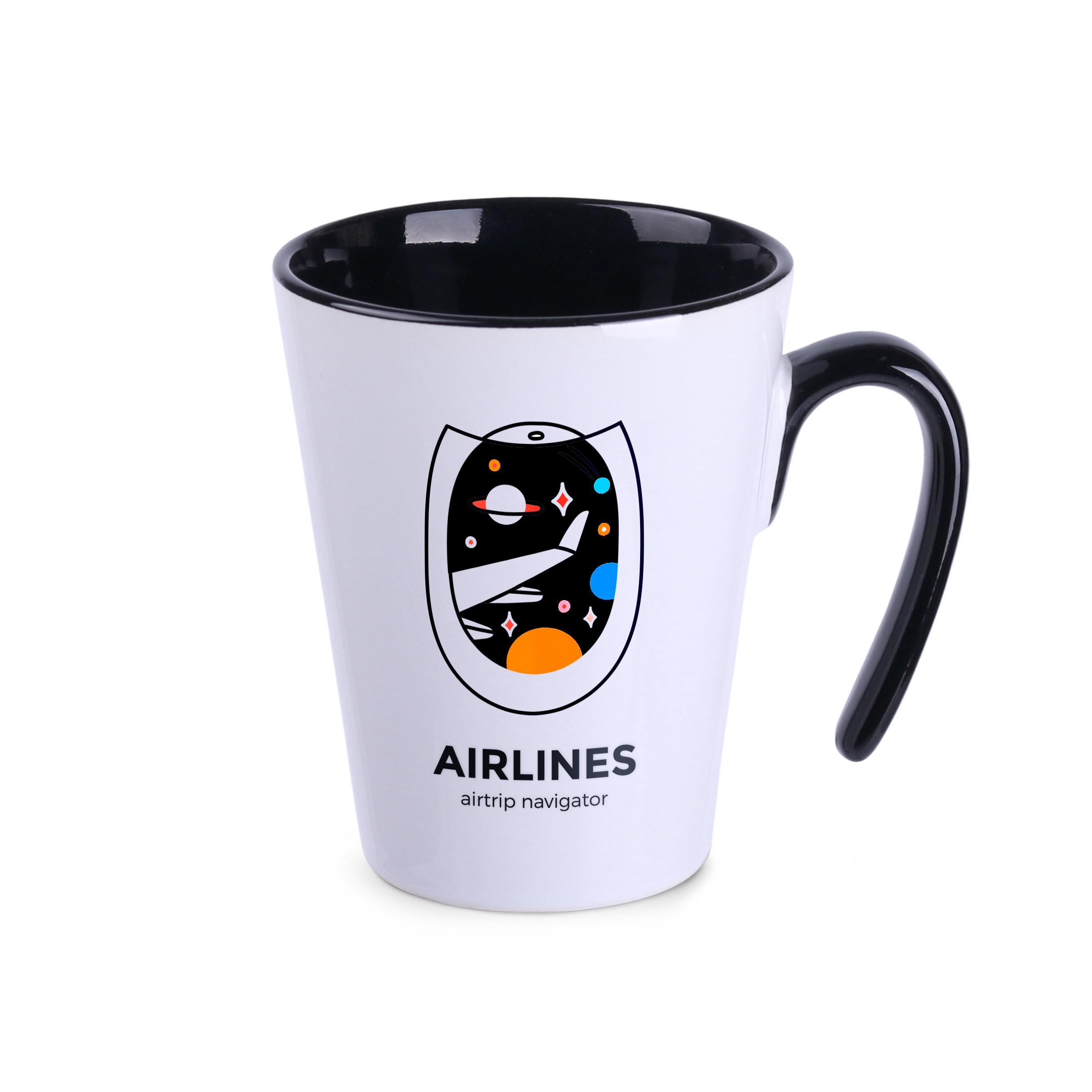 An original mug with a modern “open” handle. It has an interior in 4 colors to choose from and a matching handle. Its straight walls are perfect for large decorations.