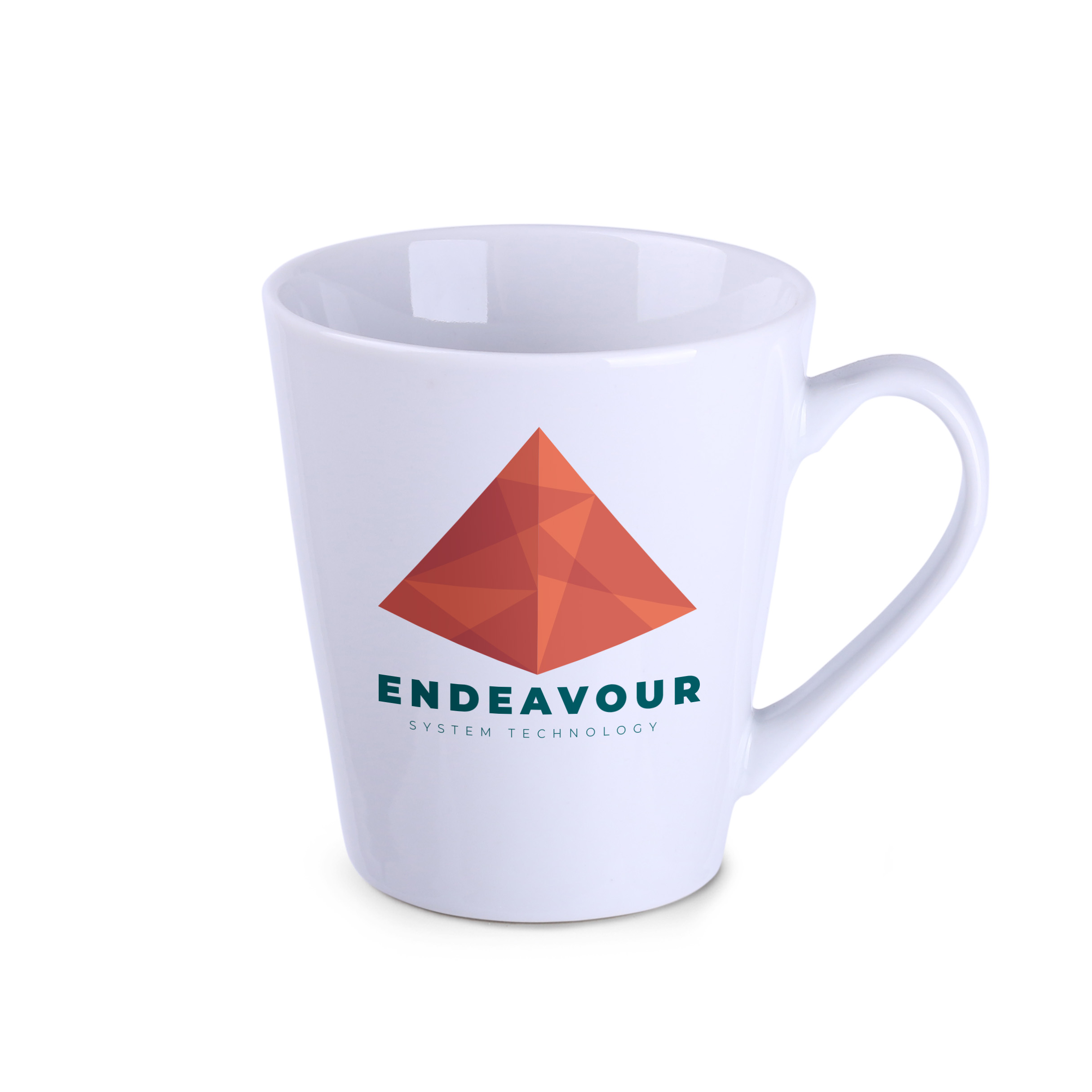 Classic trapezoidal shape mug. Made of porcelain of European origin. It has a comfortable, ergonomic handle. Perfectly fits coffee machines.