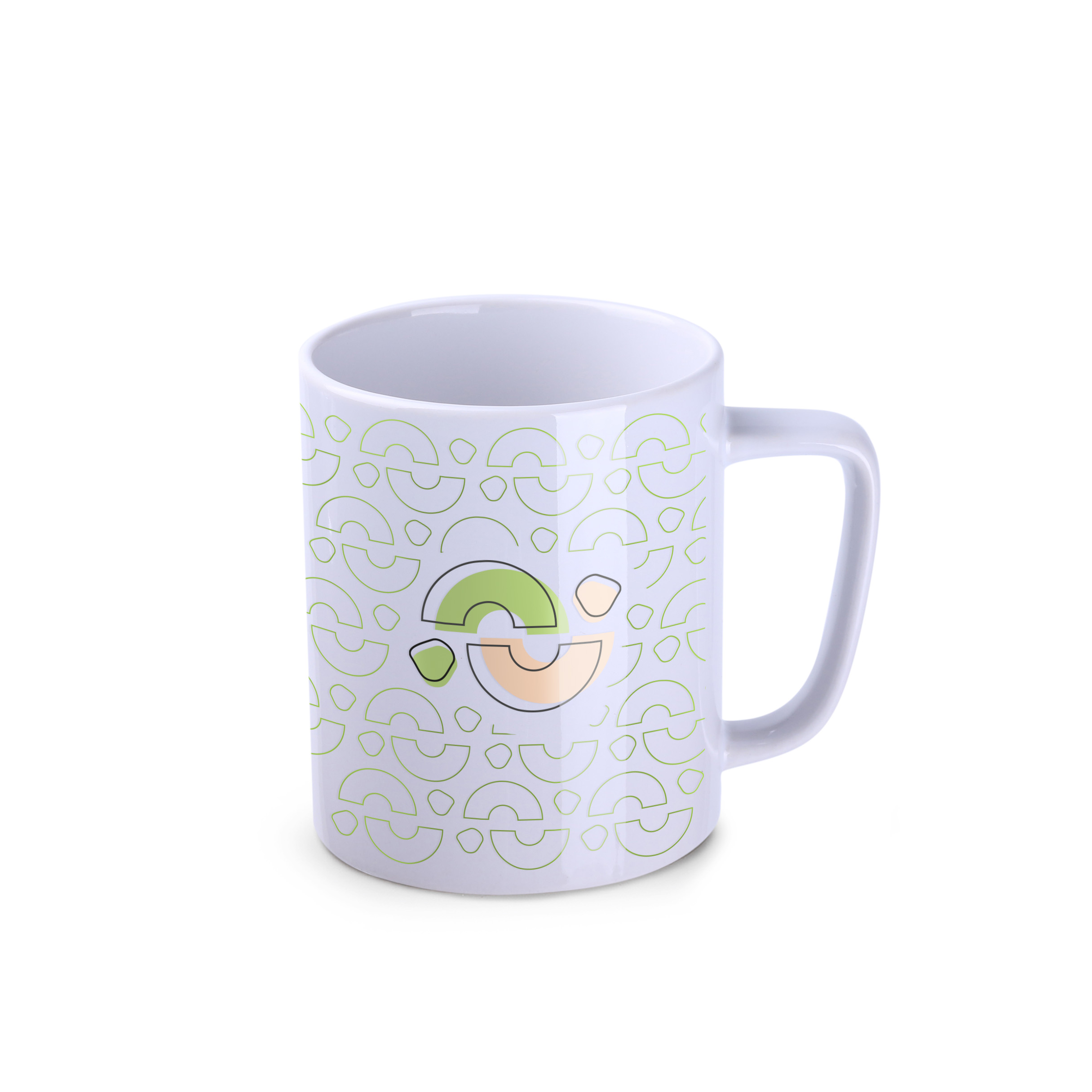 A mug with a simple shape and an interesting handle. It comes in several color versions. Perfect for displaying large and demanding decorations.
